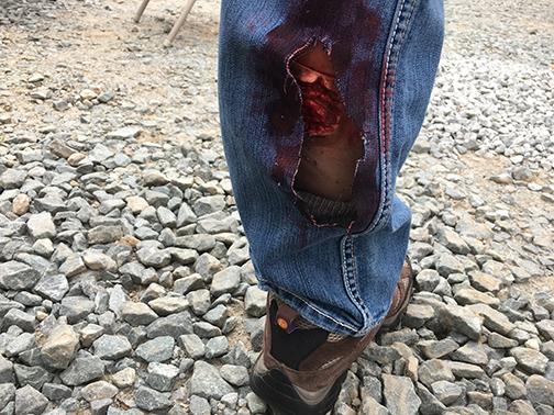 Our first stop was the moulage area, which is applying make-up to simulate injuries. Each victim was given a card explaining our injuries and how to act. The card went into our pockets as the responders needed to assess us by asking questions and observations.