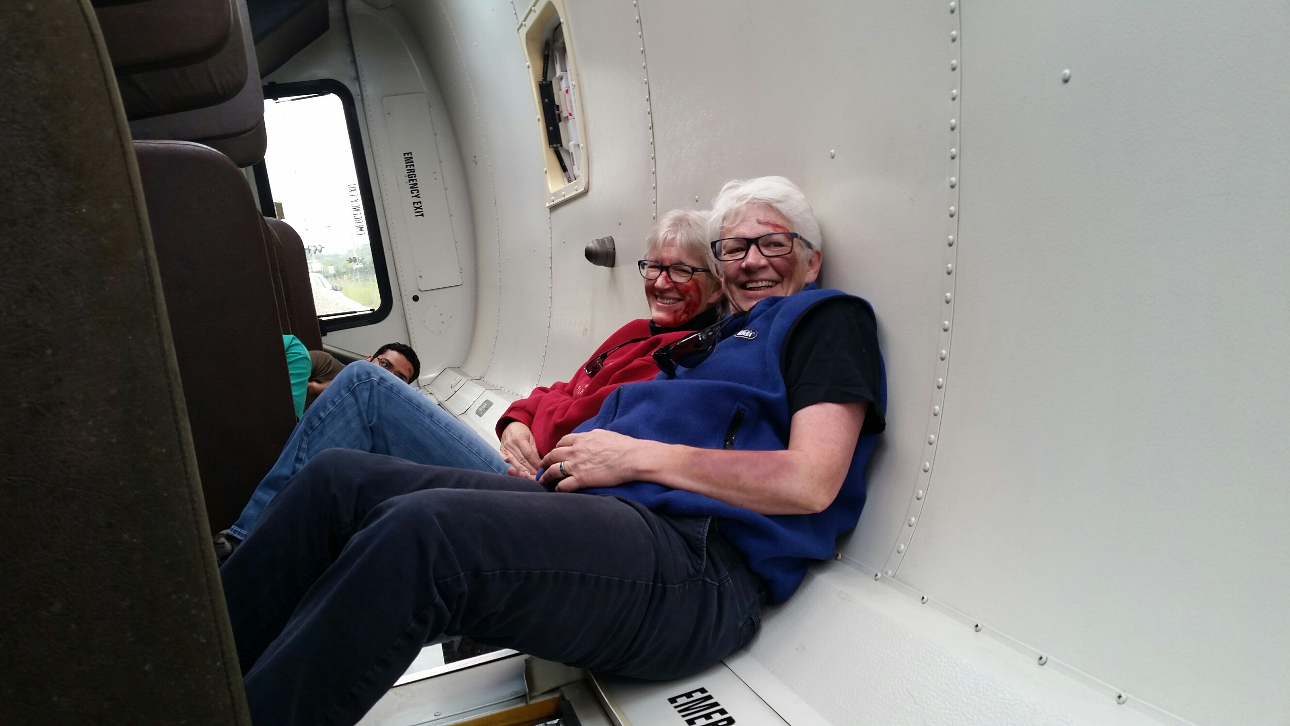 We climbed in. Some of the windows were broken so it was a bit treacherous. There were sharp edges to avoid. We figured out where to position ourselves. As always, safety was the priority. Our safety officer kept an eye on us and let us know when the simulation began.
